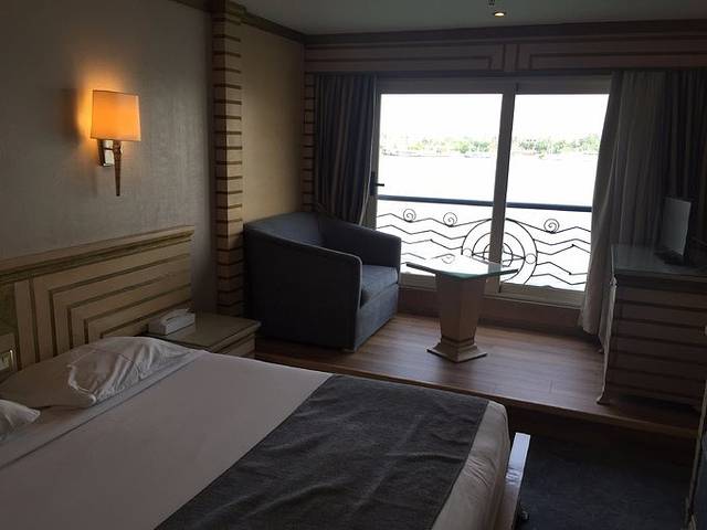 五星加的邮轮,窗外是尼罗河,靠近窗口就已经热得高能了,但室内空调很强劲