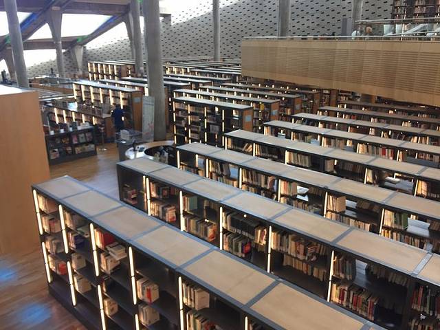 为了避免交通阻塞,在司机的指导了,我又起个大早,从开罗上路去红海边城市亚历山大,车程为2.5小时。来亚历山大最主要的目的是像参观亚历山大图书馆。世界上最早的图书馆就建在亚历山大,现在仅存老建筑的一小部分,要去参观的是新图书馆。如果是一个人旅行的话,我一般会喜欢加入guided tour(很多博物馆等地方都有),正巧去咨询台问的时候,答复一个英语的tour马上开始,一团有10多人,碰到一对一看就是美国来的男生,因为长的特别像,就问他们是不是双胞胎,他们说是brothers,再一问,两个都在读研究生,一个在U of Chicago medical school,一个在George Washington law school,这父母的基因也太强大了。这个图书馆藏书2百万册,还可以容下3百万册,整个图书馆可寸5百万册,里面还有很多博物馆,多数是免费的,有一个是要额外收费的,如果有时间,完全可以在这里计划一天的时间,确实很值得来这里留下足迹。