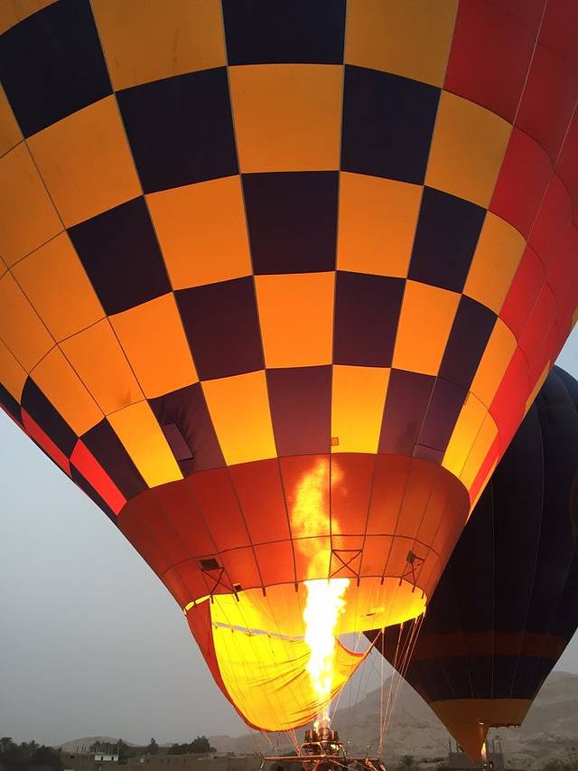 经过两位小伙伴的怂恿,我决定早起去坐卢克索的热气球!导游说收费是80美元(一小时),但事实上我看到有另外两个中国小伙伴是两个人100美元,因此估计价格是50美元一个人才比较合理。于是,根据我收到的指令,早上3:00爬起来,然后被车接到尼罗河上的游船喝早茶,船把我们从尼罗河的西岸运到东岸,然后再坐车去热气球所在的地方。事实难预料,我们是最后一车,导游说人比其他热气球少一些,因为在热气球里每人的空间大一些,我们还挺开心,结果其他三个热气球都上去了,我们的因为晚了一些,能见度当时是3000米,Luxor Tower说要至少4000米才能起飞,于是呢我们就像等航空管制一样等啊等,等了一小时,到处胡侃,认识热气球上的其他游客,有个老太太是在纽约的Moody's工作,看起来很有钱,还有一对法国过来玩的中国留学生,结果一阵妖风吹来,所幸把气球的basket也吹翻了,老太太大喊我们crash landing了,热气球也瘪下去了,最后结果就是航班取消,然后机长各种sorry,游客也都很失望。由于我之前在澳洲凯恩斯玩过热气球,因为心情就没有那么负责了。最后热气球公司全额退款给我们。