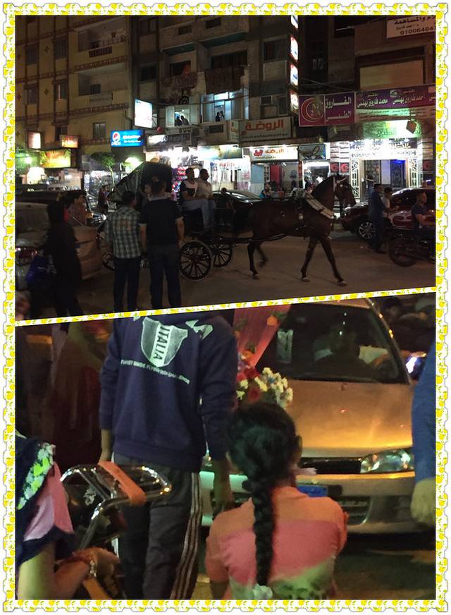 亚历山大的枪声:在商业街上游荡,看到一家卖伊斯兰头巾的店,觉得很不错,就逛了很久,买了一个粉色橙色的,我刚一出店,就听到一声枪响,真真切切是枪声,我很害怕是街上发生了骚乱,停顿思考一秒后,立马飞步躲进店里,当时就怕万一开始无辜扫射,到店里面可以容易找地方shelter,结果店家跟我说:不要害怕!那是订婚!然后出门再看,有两辆马车,马还在欢乐地跳!但当时确实惊出一身冷汗,回宾馆又冲了个澡(那天一天洗了四次……)压压惊。话说那天的前一天,一个美国认识的朋友在日本旅游,看到一个当地人的订婚,我就回复她说,我也想看埃及的结婚!结果撞上埃及人订婚,更精彩的是第二天在马特鲁,在市中心商业街乱逛的时候,还真碰上了埃及人结婚!估计是白天天气太热,埃及人结婚都是放在晚上的吧……