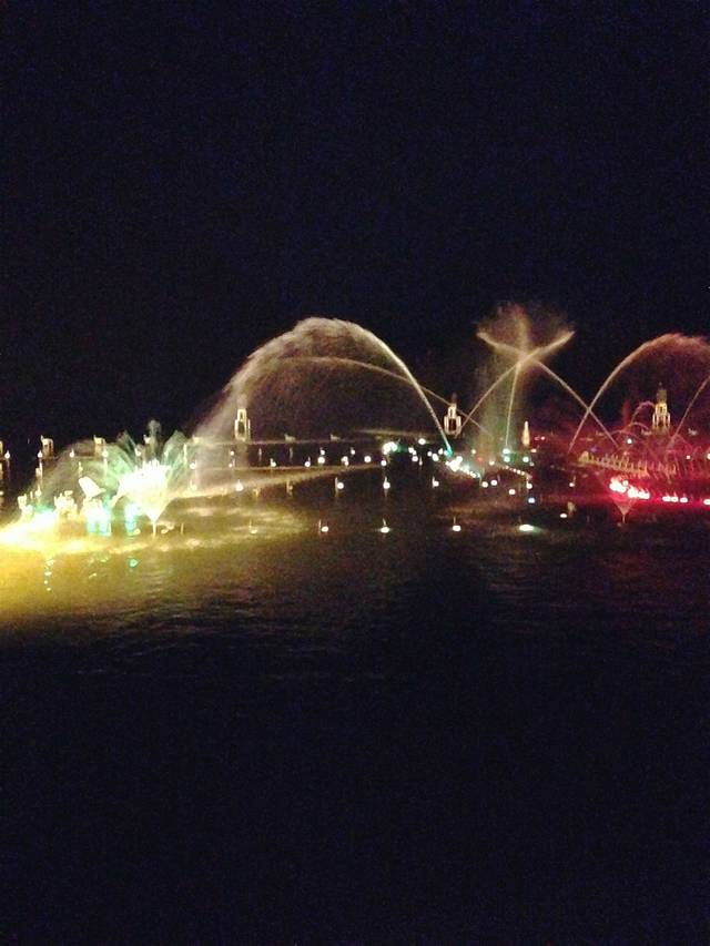 晚上的音乐喷泉,来看的人很多,持续时间也很长。