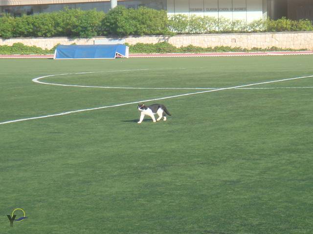 出门左转一个下坡,前面就是地中海。左边有一家披萨店,各种口味肯定有种适合你,右边那个蓝色阳台门的是一家酒店,在那里住了一个晚上,被跳蚤咬的浑身是包,去医院医生说在药店买点药就行,去药店店员说要去看医生啊,瞬间想写一本书:一个足球的自我修养。