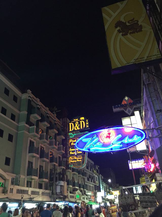 欧美朋友们吃饱之后都选择在考山路的酒吧里度过这个夜晚,我们实在是累到不行,喝了一点鸡尾酒之后就打车回了旅馆,晚上的曼谷不堵车,打车十分划算,但是千万记得要打表,如果司机听不懂英文,可以打电话给酒店的前台让他们转达酒店详细地址给司机。