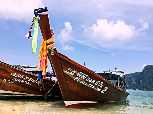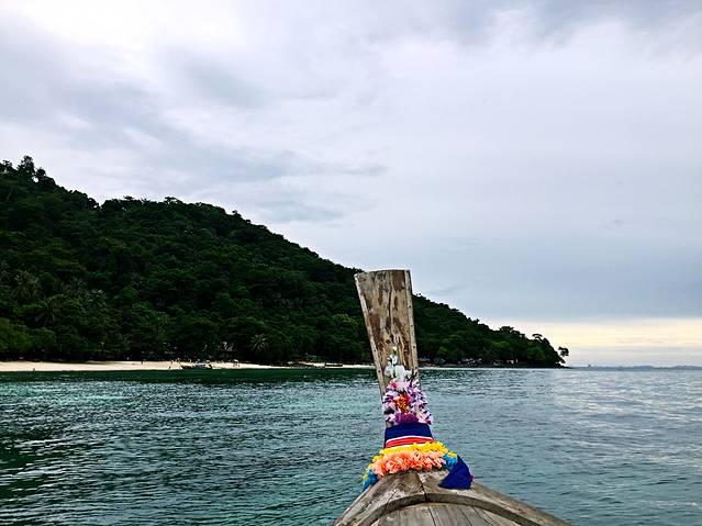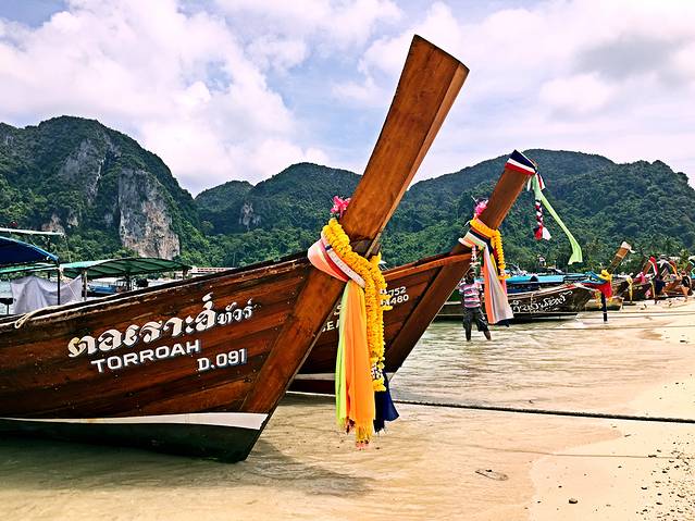 今天要从皮皮岛回曼谷,我们提前一天在码头买了直接到甲米机场的票,两个人一共1000฿,船到了甲米码头后,就有一辆私家车接我们去机场。于是这一天,我们坐船坐汽车坐飞机,到达曼谷后又坐了公共汽车和轻轨,真是奔波了一整天体验了所有的交通工具啊2333