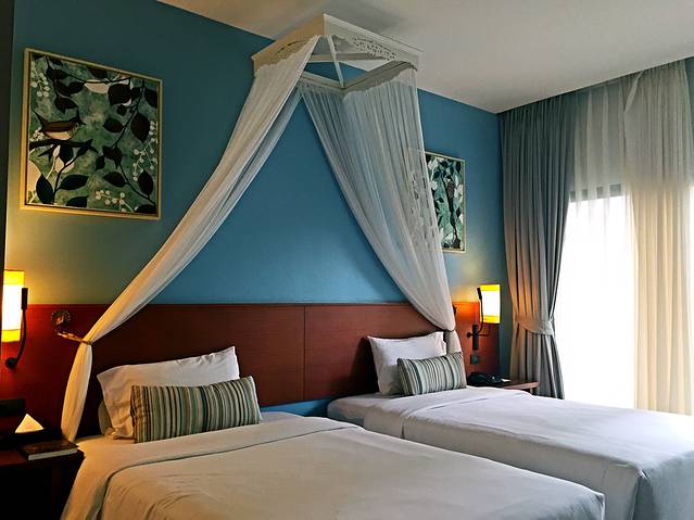 我们提前在Agoda上定了这家Deevana Plaza ,位于奥南海滩。整个酒店是个环形的结构,每个房间的阳台外面就是泳池,一楼更爽咯可以直接从房间里去泳池。甲米机场一楼出口处就有到奥南海滩的车票卖,150฿/人,上车前把酒店地址给司机,他会把你送到酒店门口。不过我们从机场出来就开始下暴雨,在曼谷的几天也是阴天,来泰国的第四天了还是没有被晒过,说出来自己都不太相信2333