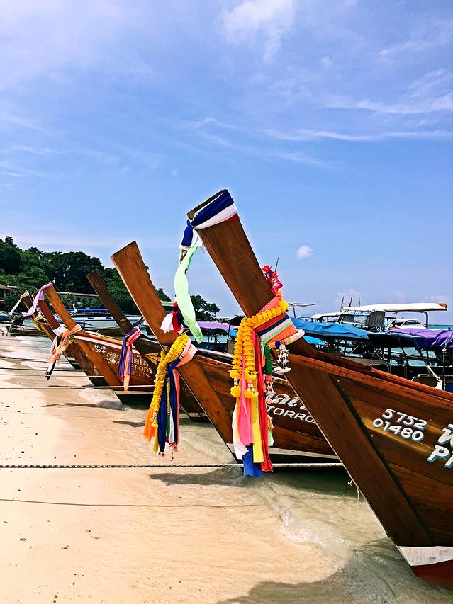 除了做攻略和买机票订酒店真的没有提前买很多东西,很多攻略里说需要提前在淘宝上买的happy卡和防水袋啥的都是过去之后才买的,其实都还ok,不过提醒大家,如果没有提前在淘宝上买happy卡那也不要一下飞机就在机场里买,很容易买贵哒,泰国遍地都是7-11,里面也都有happy卡卖,299฿一张流量随便用,真的很划算。另外,从甲米的奥南海滩到皮皮岛的船票我们是提前在淘宝上订的,一个人80多人民币。