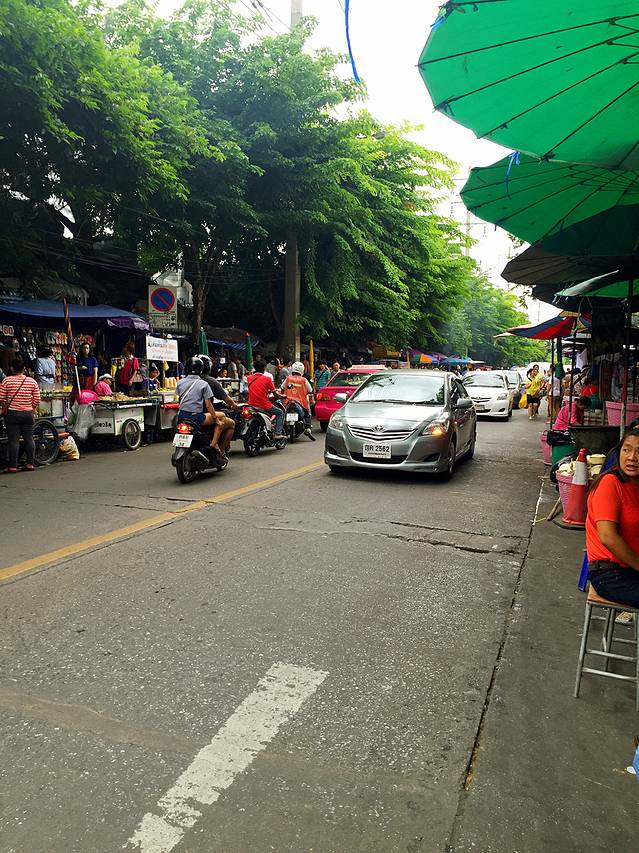 Chatuchak周末市场是全世界最大的周末市场,有十个足球场大小。我们下午四点多才返回曼谷,从胜利纪念碑坐BTS在终点站Mo Chit下车,就可以看到轻轨下拥挤的人群全是往周末市场去的人。Chatuchak周末市场感觉一天都逛不完,从衣服到小吃还有颜色鲜艳的假花,看得我们眼花缭乱,所有你能想到的东西都可以在这里用低价买到,市场中间是一间间的小店铺,我们花了两个小时才只在最外圈走了一遍,从小店铺中走出来,紧挨着旁边的公园,是一整条街的小吃摊,简直没有办法在摊子前移动双腿。遗憾的是我们明天一大早就要离开曼谷,只能早早回了酒店。如果时间充裕,下次我们一定会花一整天的时间泡在这里。