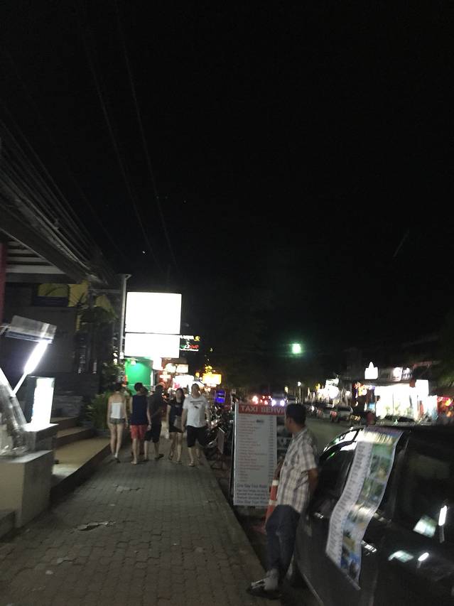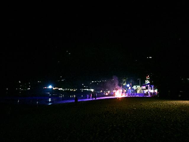 通赛湾的酒店普遍都比较旧,当然不能跟我们前一晚住的度假村相比,但是通赛湾的店特别多,吃的也很多,尤其是晚上,我们吃过晚饭在岛上漫步,走去了通赛湾背后的一个海湾,沙滩上全是酒吧和玩火的朋友,不过我们注意到整个海滩上都是欧美人,我和kelly大概是唯二的亚洲人。晚上我们俩在海滩上聊了很久很久,从小学的各种八卦聊起,讲到小时候的各种傻事真是哭笑不得啊233333很开心能跟你一起度过这九天的旅程,爱你(づ ̄3 ̄)づ╭❤~后来我们直接坐在沙滩上喝了点小酒,沙滩上到处都是喝得微醺的歪果仁,其实他们还是蛮好玩的,经过时会大声跟你打招呼,居然萌萌哒,还有碰到两个巴西人,很能聊也很开心~因为是在皮皮岛的最后一个晚上了,不舍。