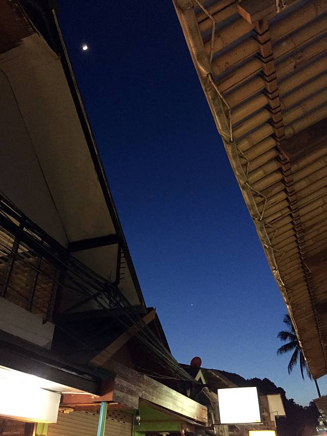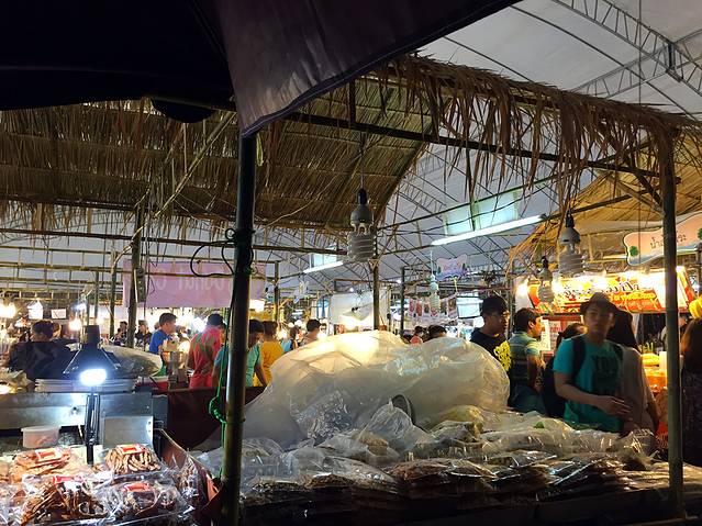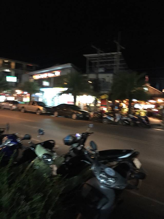 lae lay grill是一家专门看日落的悬崖餐厅,然而我和Kelly两个人的人品加起来注定是看不到日落的。。。没有办法,自己预定的餐厅哭着也要吃完,之前在酒店前台预定了lae lay grill的晚餐,五点半就有车专门过来接我们去餐厅,五分钟不到的车程,不过在山上所以还是坐车过去吧~于是我们在烟雨蒙蒙中欣赏了大海,吃了一顿舒服的晚餐。吃完饭我们又跑去奥南的夜市,实在是放弃不下路边摊的美食和马杀鸡啊!因为白天太累,我们决定尝试Thai massage,也就是全身的~又去了昨天那家店,老板娘都记得我们啦,两个人也是稀里糊涂,忘记讲时间,直接被按着做了两个小时的马杀鸡,中途还因为刮大风停了电,不过两个小时也只要400฿而且舒服的差点睡过去。
