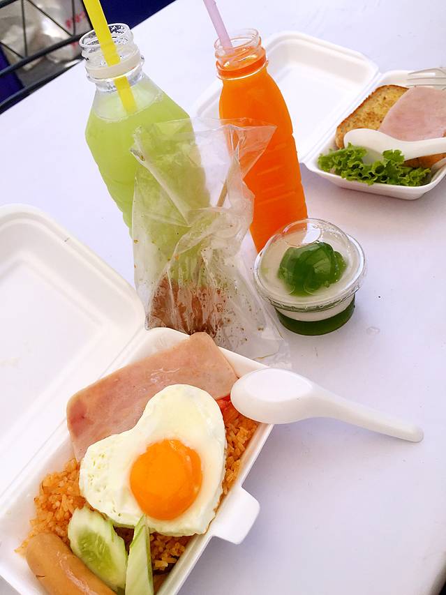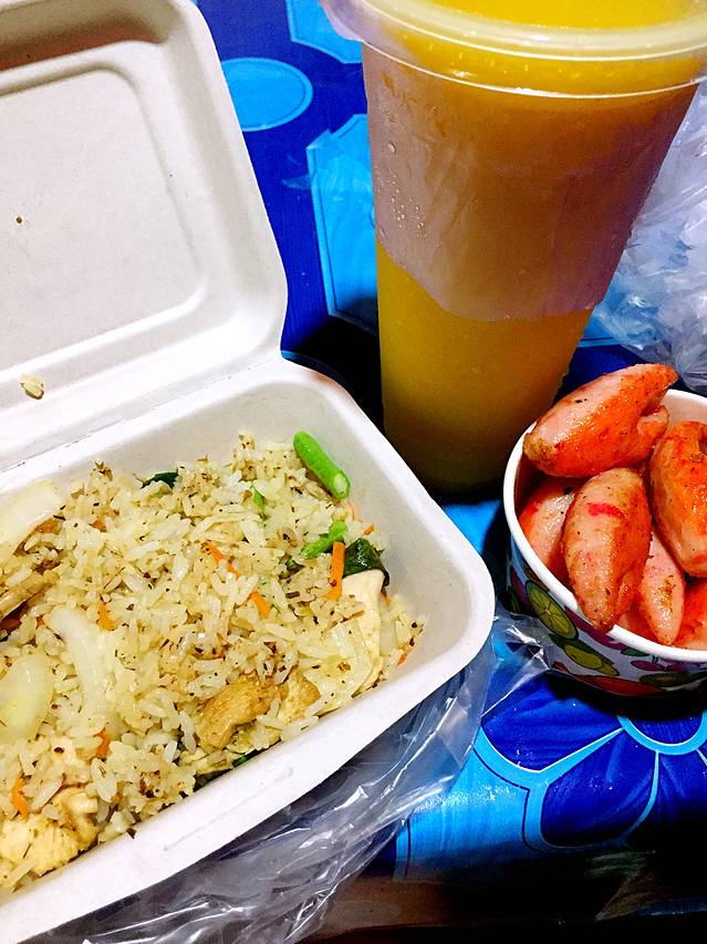 夜市上吃的绿咖喱炒饭,芒果沙冰超级好喝