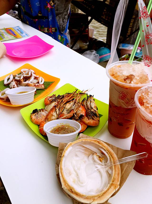 之前做计划的时候看到很多人推荐安帕瓦水上市场,尤其是到了晚上有萤火虫看。但是安帕瓦是周末市场,我们特地在曼谷多留了一天过去玩。安帕瓦有很多当地人在周末前去游玩,各种小吃和工艺品是我们在泰国买过的最便宜的了。不过这段时间当地降雨太少,安帕瓦水位下降,河道虽然多但是味道挺大的。。。。我们在安帕瓦逛了两个多小时,吃过午饭便原路返回坐MiniBus回到了曼谷。交通:坐轻轨BTS到胜利纪念碑站(N3)4号出口出站后就能在立交桥下看到前往安帕瓦的小型巴士(Mini-Van)的售票点,单程票价80铢,2小时一班,车程两个多小时,返程的车票就在下车点可以买到,一样的价格。