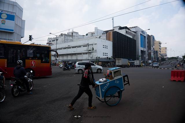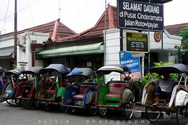 天气预报说今天有雨,趁着还是阳光明媚,匆匆在旅店安顿好,便开始在日惹成立晃荡。清晨的日惹还很冷清,只有匆匆上班的白领和穿着漂亮制服的学生;安顿好住宿再次出来,已是另一番景象,原本清晨宽敞的主大街,便道两旁的商贩已把货物摆出,热闹非凡,想要快步前进,还需要来到行车道上去。