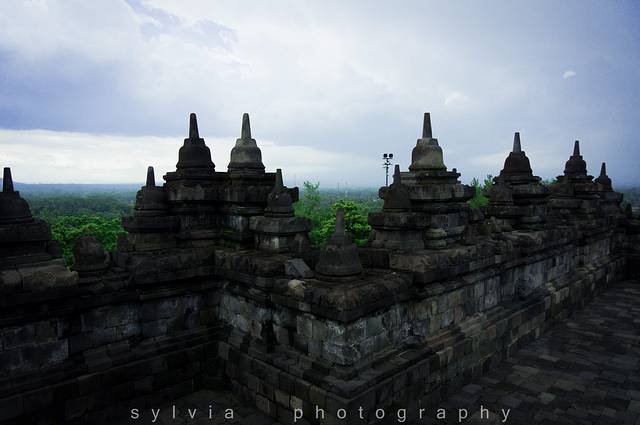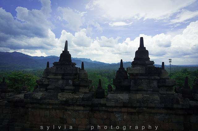 婆罗浮屠的名气跟蒲甘城和吴哥窟起名,也算是东南亚数一数二的佛塔群,是世界七大奇观之一。由于火山爆发,佛塔群下沉,被雨林覆盖千年,直到19世纪才被发现。婆罗浮屠的意思就是“山顶上的佛塔”。坐在在山顶上的佛塔看日出,是最美不过的事情,但是这要凌晨4:00多从日惹市区出发,实在起不来,因此放弃。