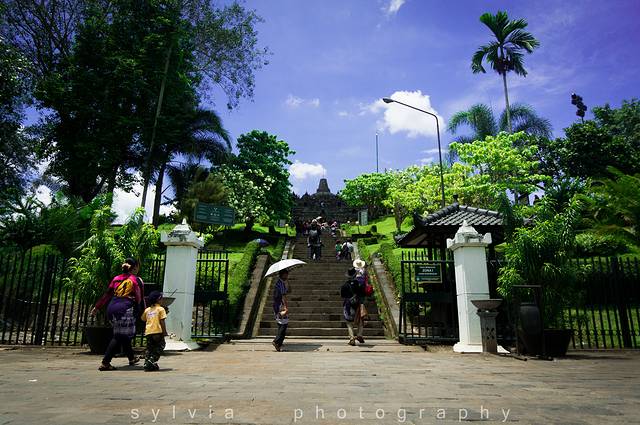 一路狂奔,很快就出了日惹市区,出了城区的路也是很好走,道路平坦很适合骑行,大概骑了有1个半小时左右,便到了婆罗浮屠。婆罗浮屠的门票很贵,要25刀,但是买门票时发现,不收美元,购票柜台可以兑换美元,但是汇率很差,所以一定要带上充足的印尼盾。