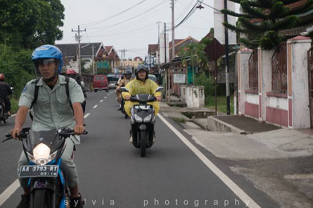 早晨起晚了,包车已经来不及了,从店里租了摩托车,打算骑去婆罗浮屠。包车最好在9:30之前出发,这样婆罗浮屠、默拉皮火山、普兰班南都可以去,包车费用550,000Rp,8个小时。还有夜里2:00起来去爬默拉皮火山的探险小团,这次没有时间参加,所以只能骑摩托过去眺望一下了。