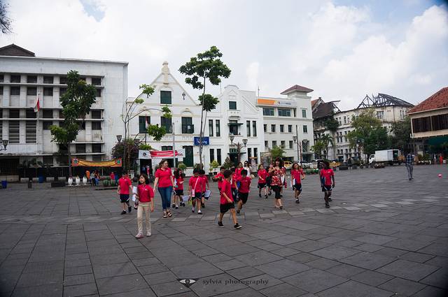 来这里可以搭乘公交在Kota或Glodok站下车步行至广场。Glodok就是唐人街那站,我就住在这里,虽然比起广场那边上的建筑,这边的建筑显得破烂不堪,但是穿行于此也别有一番乐趣呢。