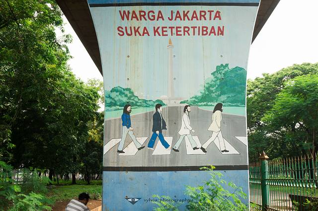 广场旁边火车高架桥墩上,THE BEATLES也被请来雅加达了