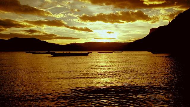 落日余晖,水波潋滟。