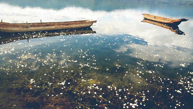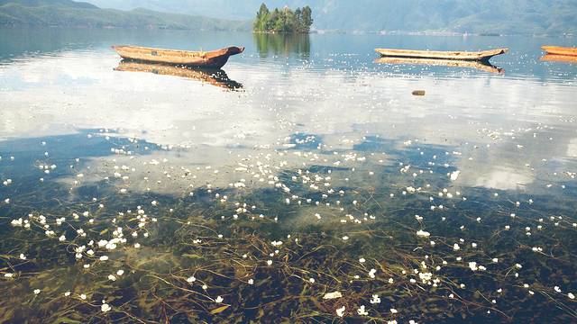 泸沽湖的湖面上点缀着很多这种白色的小花,就是传说中的水性杨花,不过真的很美,听说还可以吃呢!