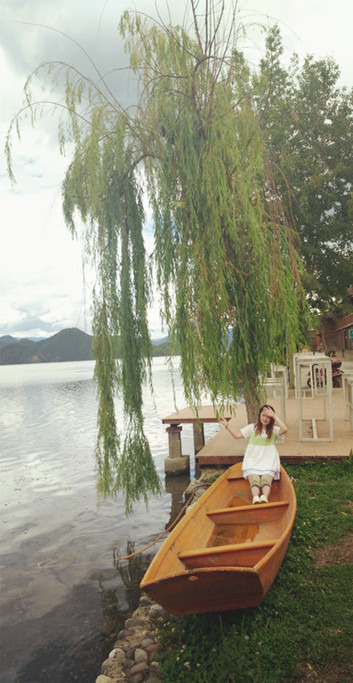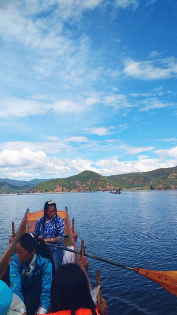划船的摩梭小姑娘,还有随微风不时飘来的摩梭人悠扬的歌声,那么安宁。