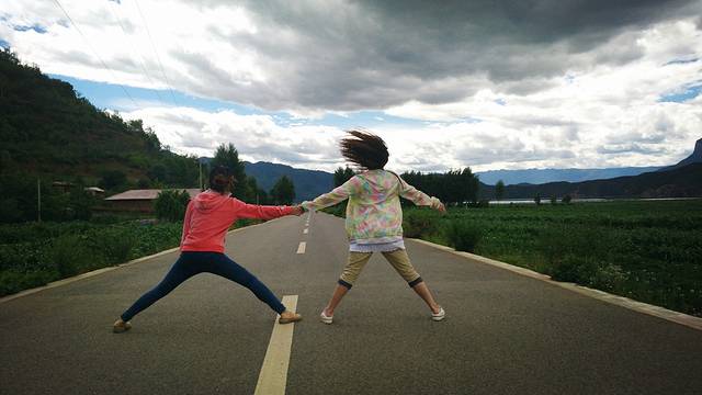 大概是在蒗放村这里,有一段路特别笔直,我们就停下了车,各种摆拍。。。。