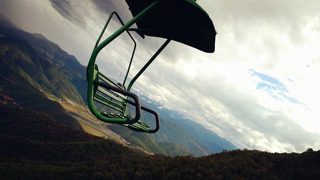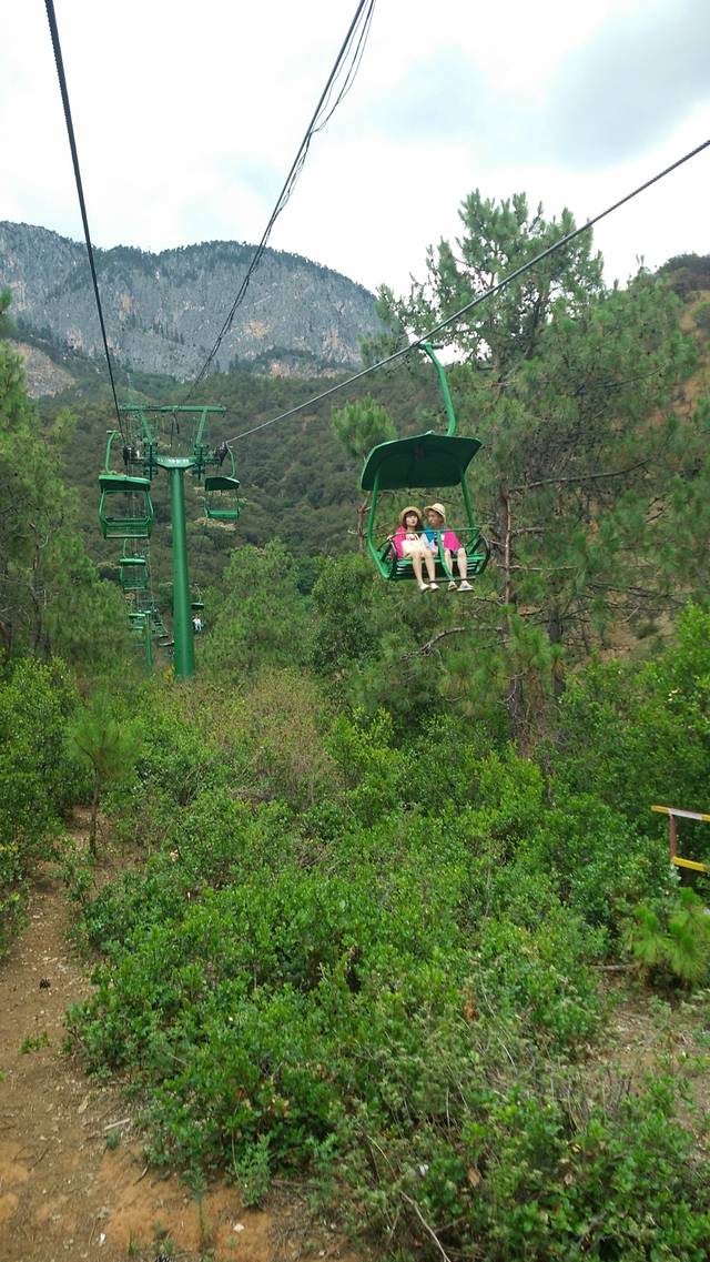然后就是坐这种索道,全程大概要20分钟吧。开始很低,越往上越高。椅子四周没有什么安全防护,双脚都是悬空的,到了很高的地方还真的有点怕怕的呢!