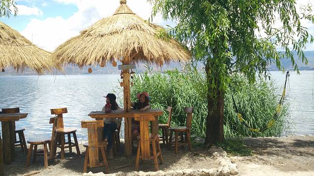 因为昨天是拼车环湖,玩的比较匆忙,有些景点和漂亮的地方还没有玩够,今天就决定骑车休闲自由行。早上起床就退了房,因为心里还念着刚到泸沽湖那天达祖的美景,就在网上选定了玛里阳光客栈,打电话问了有房以后,老板就叫车来接我们了。
