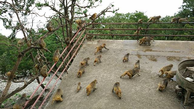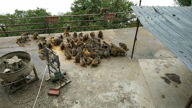 下山的时候偶遇给野猴子喂食,成群结队,你争我抢。