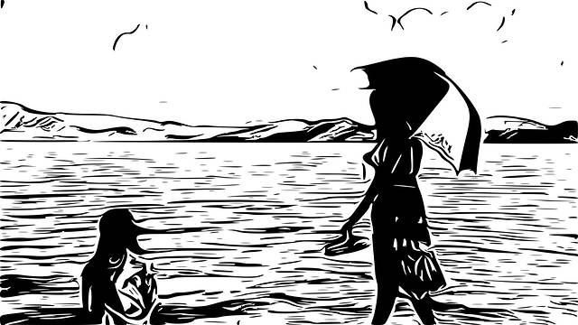 黄昏里,沙滩上,剪影旧