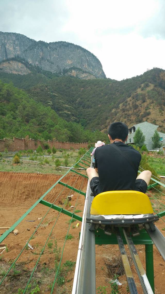 先要乘坐一小段这种滑道,有点像开碰碰车,很好玩的。