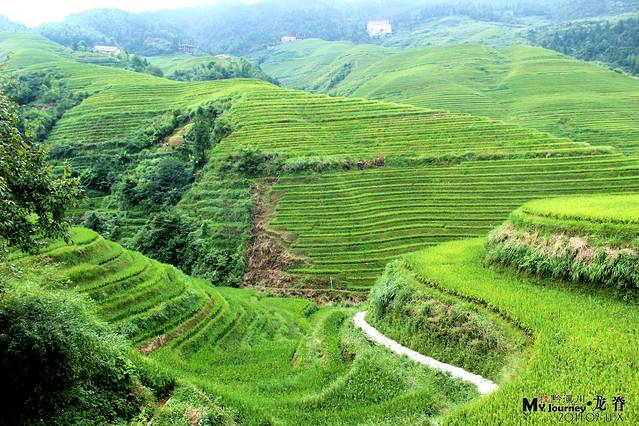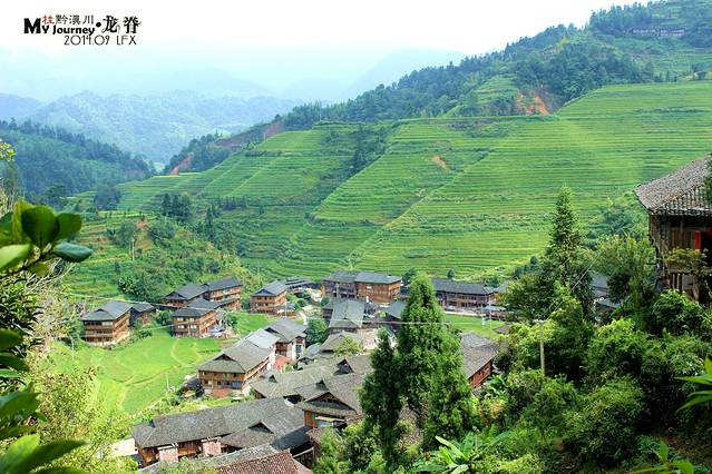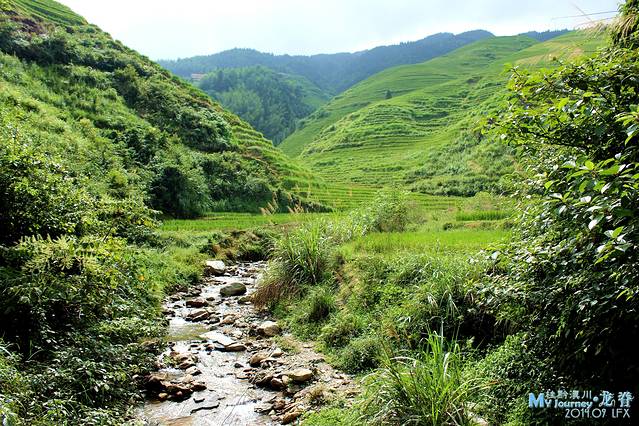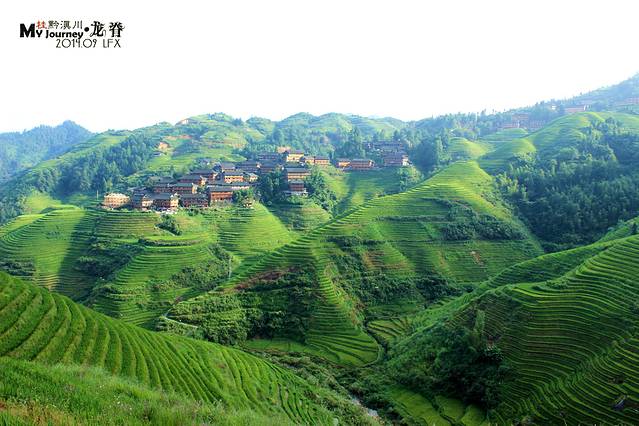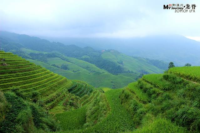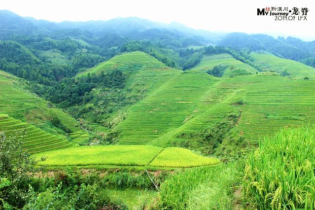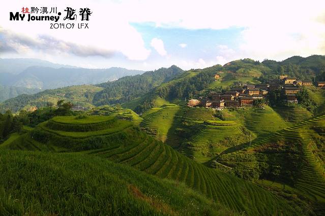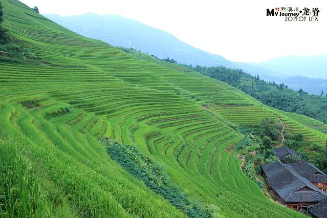 提前联系了龙脊梯田的金坑青旅,预约了一大早开往龙脊的班车,50/人,桂林火车站前方乘车。龙脊梯田在广西龙胜各族自治县和平乡平安村龙脊山,距桂林市80公里,主要包括金坑.大寨红瑶梯田景观区、平安壮族梯田景观区两个观景区,平安大寨平时旅游团去得比较多,而金坑离景区大门较远,据闻风景更胜,人流量较少。于是果断直接前往金坑大寨。巧逢前段时间雨季,景区内塌方,道路不通,车开到景区中途须下车徒步30分钟后换成另一班车,于是耗时4小时余方到金坑大寨脚下,开始了龙脊之旅。龙脊通票100元,学生票50,包括了两个景区。当然两边风景相似,挑选一个景区足够了。