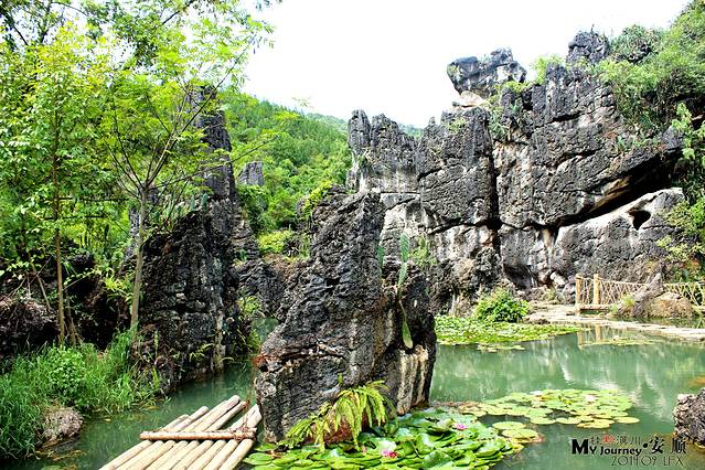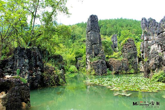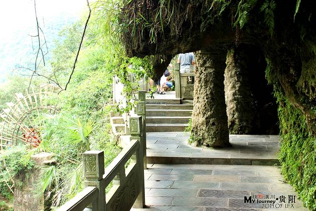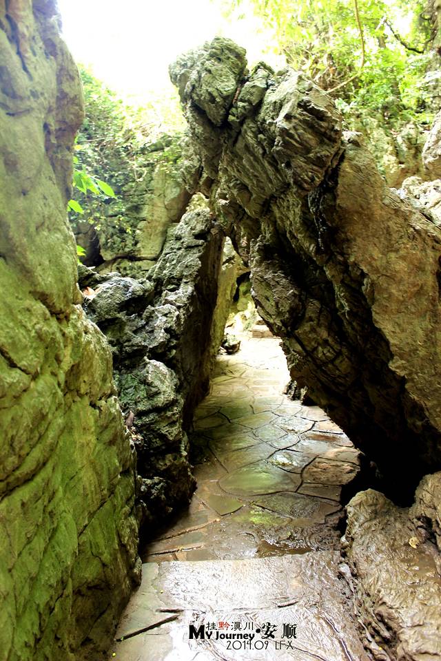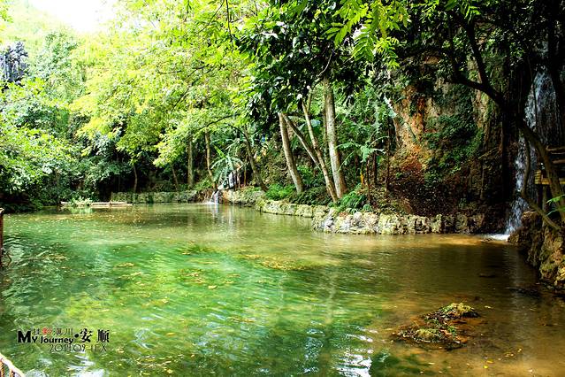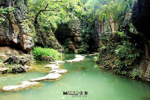 在青旅工作人员的推荐下,第二天的行程选择了天河潭、镇山村。天河潭风景区位于贵阳市花溪区石板镇境内,距贵阳市24公里内兼具黄果树瀑布之雄、龙宫之奇与花溪之秀,集飞瀑、清泉、深潭、奇石、怪洞与天生石桥于一身,浑然天成;农舍水车,小桥流水,野趣盎然,清幽宜人。可惜过去的路太坎坷,一路颠簸,颠倒屁股都痛了。