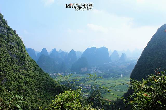 同行哥们对月亮山很感兴趣,于是陪他爬上了月亮山,在上山俯瞰阳朔。