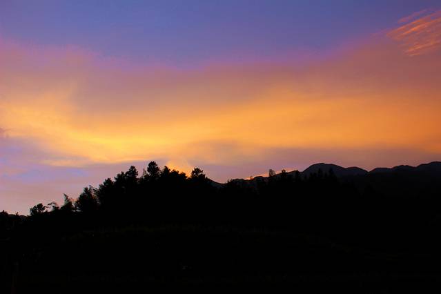 金坑景区可能开发得比较晚,一路指示牌做得很少,导致我们迷路了!!!!在深山里面兜兜转转,结果错过了日落。等回到正途等上金佛顶的时候,太阳已经下山,遗留一片红霞。