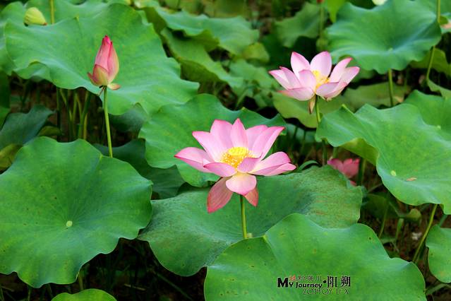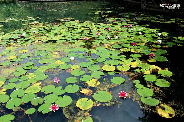 数步之差,风景各异,睡莲浮水,怪石耸立。