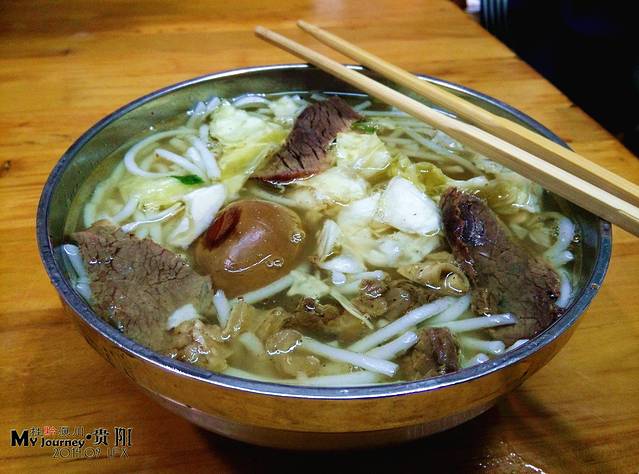 花溪超赞的飞碗牛肉面。高汤浓郁,牛肉大片劲道够味,粉口感圆滑,再加上酸爽的白菜,令人回味无穷。