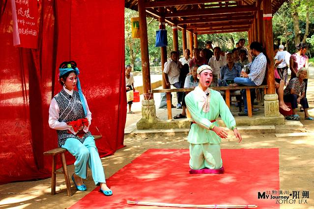 骑行完毕,回到阳朔,逛了一下阳朔公园,刚好表演大戏,观众大多是上了年纪的爷爷奶奶。这是一部慈母孝子的剧,他们看得很入迷,我甚至在几个老人眼里看到闪烁的泪光。有的老人看到结束,从干瘪的口袋拿出20元,塞到演员的手中。