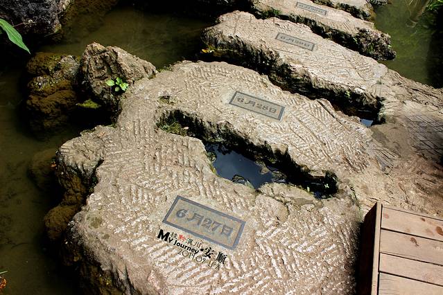 数生步———水中天然形成的石块经过加工后铺成道路,露出水面供游人行走,总共365块形态各异的石头蜿蜒在水中,一步是一天,正好是一年,步步有景。