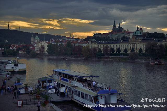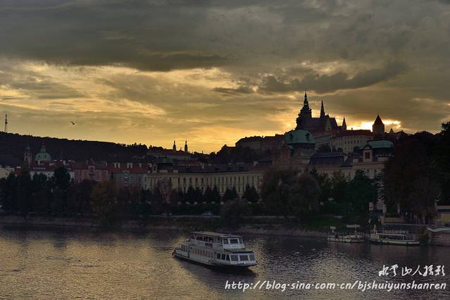 17:50离开,步行到停车场。在伏尔塔瓦河上的一座河桥上巧遇奇妙晚霞,拍摄比较满意。