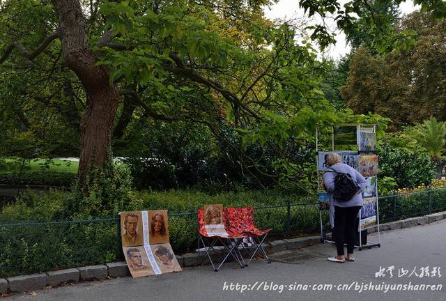 路旁有卖画、画像的小摊,游人较多。