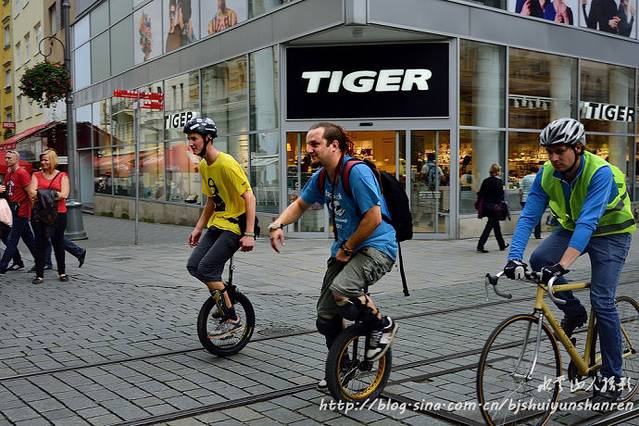 中间穿过一座很大的城市,应该是皮尔森(Pizen),车辆很多;见有3节车厢组成的彩色有轨电车。