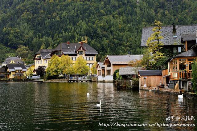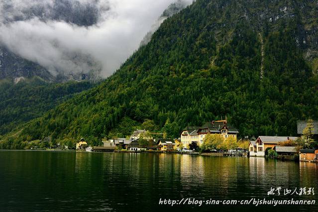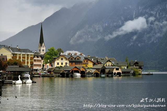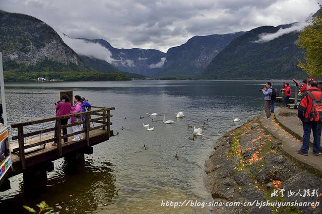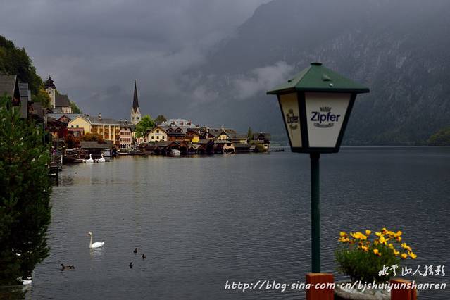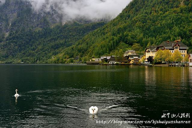 12:00到达哈尔斯塔特。当此时也,乍雨乍阴,只见群山环绕,山间云雾缭绕,很有层次;湖水暗绿,有天鹅和其他水禽游戏。抓紧寻找各种地点和角度拍摄。