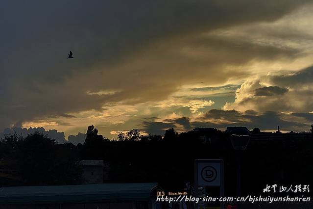将到维也纳前,大雨如注,到达时转晴,有晚霞。