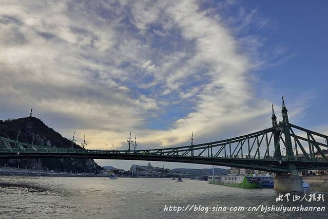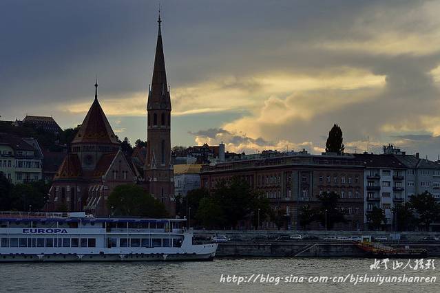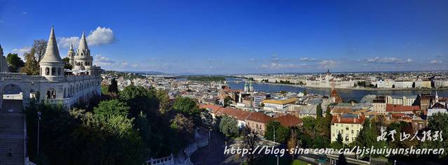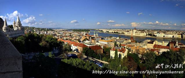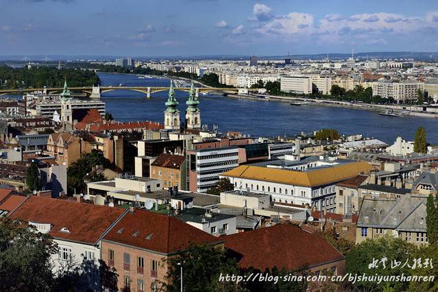 多瑙河发源于德国南部,全长2850千米,自西向东,流经奥地利、斯洛伐克、匈牙利、克罗地亚、塞尔维亚、保加利亚、罗马尼亚、摩尔多瓦,乌克兰等10个国家,最终注入黑海。有人作过统计,它的河水在一年中要变换8种颜色;6天是棕色的,55天是浊黄色的,38天是浊绿色的,49天是鲜绿色的,47天是草绿色的,24天是铁青色的,109天是宝石绿色的,37天是深绿色的。我们此行见到的多是棕色或浊黄色的,在布达佩斯看到的却是浊绿色的。网上说,布达佩斯被称为“多瑙河上的明珠”,它是由西岸的布达和东岸的佩斯两座城市,通过多瑙河上8座美丽的桥连为一体的。城内许多古迹多建于城堡山。城堡山是面临多瑙河的一片海拔160米的高岗,13世纪时修建的城堡围墙至今保存完好。著名的渔人堡,是一座尖塔式建筑,结构简练,风格古朴素雅。游人可以站在渔人堡的围墙上,欣赏多瑙河上的美景和佩斯的风光。