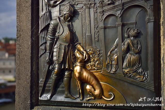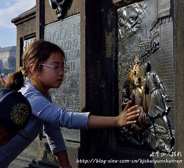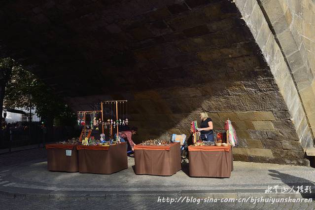 出了黄金巷,又步行到建于1357年、横跨伏尔塔瓦河、圣像林立、艺术价值无比的查理大石桥参观游览,桥两旁矗立着颇富哲思的圣者雕像,桥上尽是街头艺术家,从绘画到雕塑、手工饰品到现场演奏,包罗万象,人潮络绎不绝。