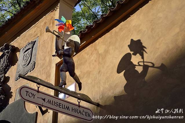 之后,步行参观位于布拉格城堡内圣乔治大教堂和玩具博物馆之间的黄金巷(Zlata Ulicka),这是一条出售手工艺品的商业街,热闹程度与查理大桥不相上下,是布拉格古堡最著名的景点之一。16世纪罗马帝国时期,这里居住了很多冶金师,后来这条石砖街便被称为黄金巷。小巷不大,任何建筑都是小小的,色彩丰富,像童话王国里精灵的居所。黄金巷22号一间水蓝色的房子就是一百多年前卡夫卡的居所,现今已经成为一家小书店。