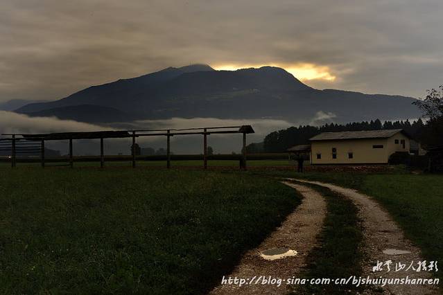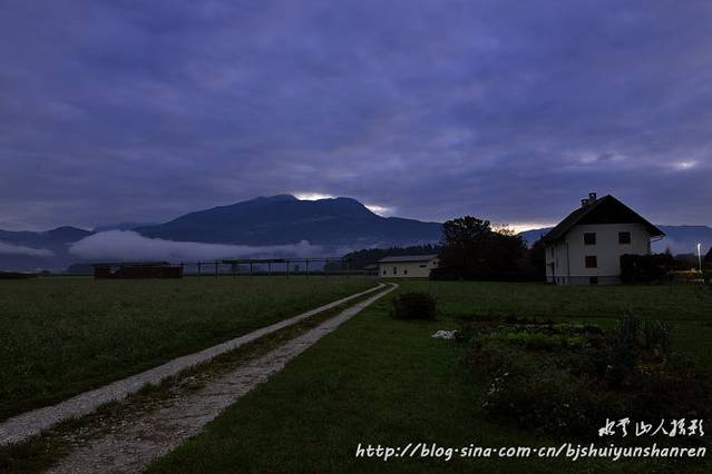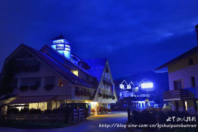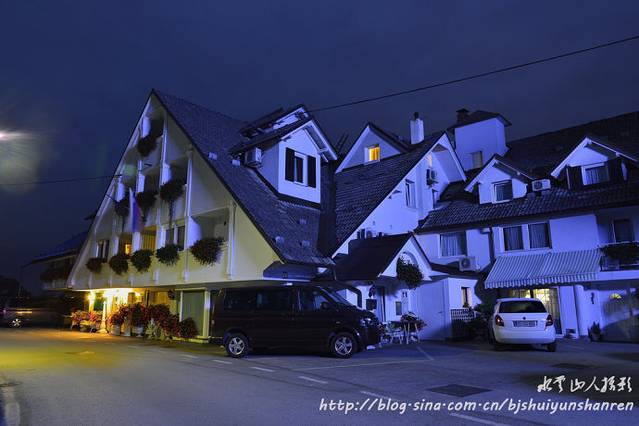 17:50在城市宾馆前集合,乘车到皇城酒家晚餐,晚餐后见西天出现漂亮壮观晚霞,颇似4龙飞舞;可惜没有理想前景。19:00上车到郊区,车上团队酝酿明天6:30提前出发赶往布莱德湖拍摄,每人加4欧元;后因有人感到提前量不够,又决定按原计划时间安排8:00出发。入住卢布尔雅那郊区某村庄的Jagodic宾馆214房间,房间、大厅都很小,设备很差;房间因信号太弱,无法上网;酒糟味很浓;第二天早上上车出发后发现,这个村庄就在卢布尔雅那机场旁边。