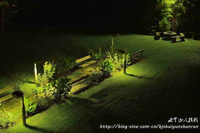 次日早晨5:00起床,天空有星星,风声呼呼,很冷,加羊毛衫,等待,在凉台拍了一副灯光照。
