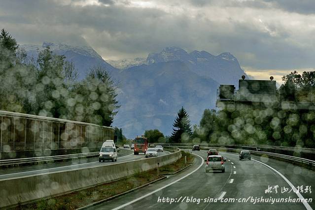 10:10我们离开非常难舍的布莱德湖,乘车前往风情万种的奥地利第四大城市、阿尔卑斯山脉门庭、“音乐神童”莫扎特的故乡、电影《音乐之声》的拍摄地——萨尔茨堡。路上遇到堵车30分钟,在服务区购物30分钟,一路阿尔卑斯山山区风光如画。