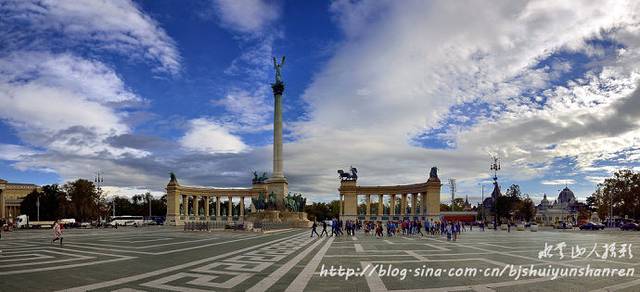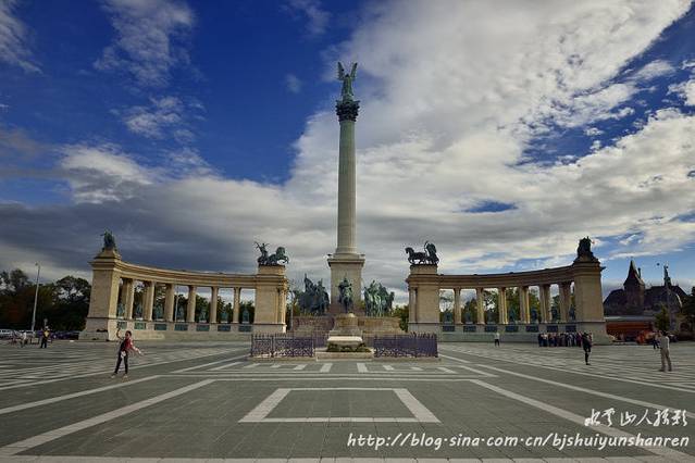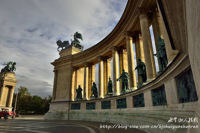 后话:第二天早晨,雨过天晴,蓝天白云,在英雄广场停车拍摄。笔者观赏广场上众多的英雄群像,总感觉匈牙利人就是历史上强悍的匈奴人的后裔。